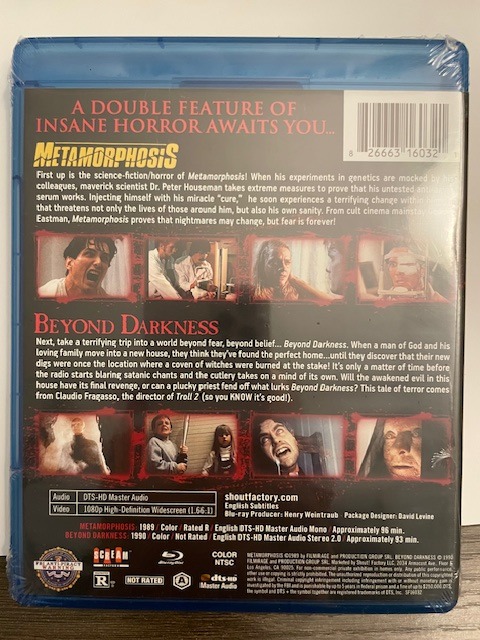 First up is the science-fiction/horror of Metamorphosis! When his experiments in genetics are mocked by his colleagues, maverick scientist Dr. Peter Houseman takes extreme measures to prove that his untested anti-aging serum works. Injecting himself with his miracle "cure, ", he soon experiences a terrifying change within himself that threatens not only the lives of those around him, but also his own sanity. From cult cinema mainstay George Eastman, Metamorphosis proves that nightmares may change, but fear is forever!